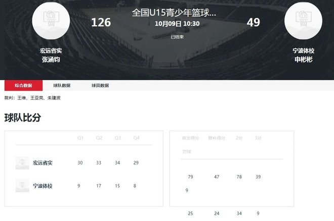 全国U15青少年篮球联赛正在进行,宏远省实队代表广东男篮出战。在首场和宁波男篮的比赛中,宏远省实展现出了非常强的实力,首节比赛就打出了30-9的比分,接下来宏远省实毫不手软,半场就将优势扩大到接近40分。下半场比赛,宏远省实继续扩大优势,打得对手毫无招架之力,最终以126-49大胜对手,取得了一场77分的大胜。在这场比赛中,小将廉子乐的表现非常亮眼,他半场12投10中,其中两分球6中6、三分球6中4,得到了25分。由于分差比较大,廉子乐下半场打得时间并不长,全场得到了35分5个篮板3次助攻的数据。