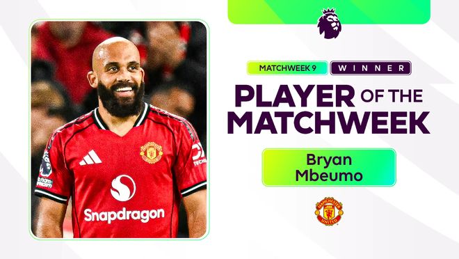 英超官方:姆伯莫当选第9轮最佳,曼联球员连续两周获此殊荣